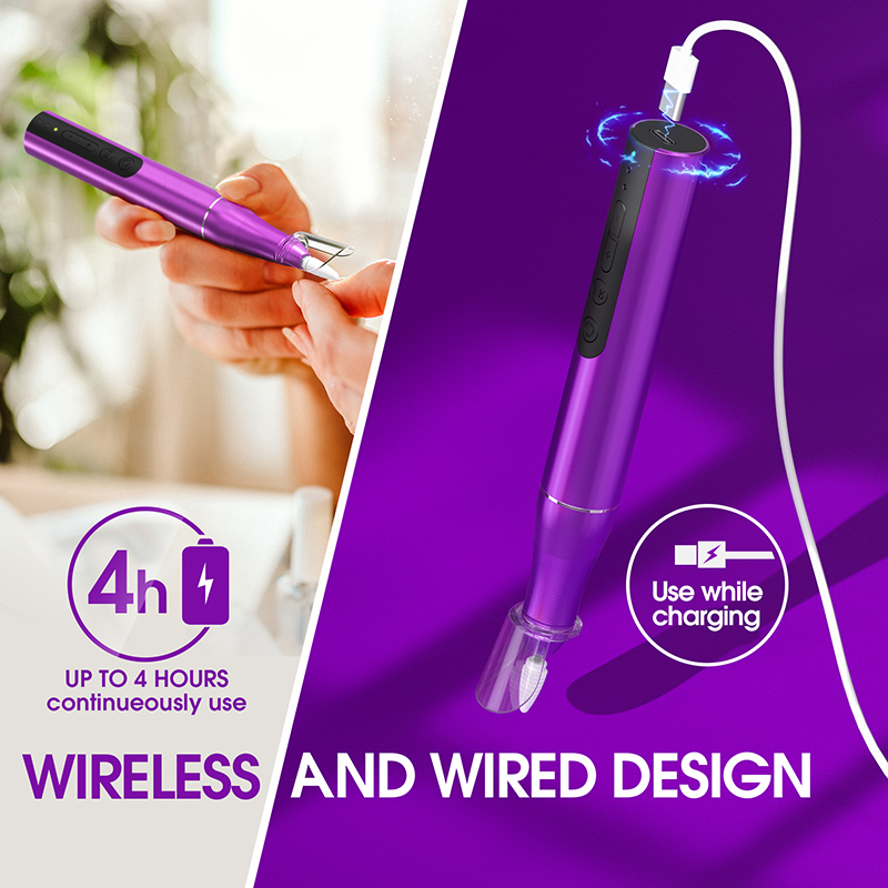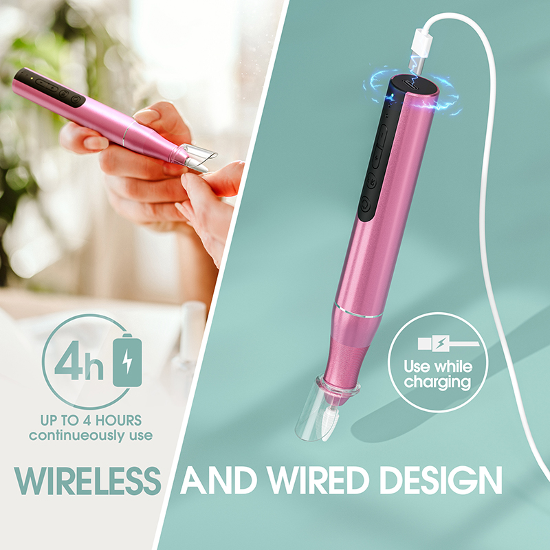 Le frese per unghie acriliche sono progettate per essere leggere (85 g) e possono stare nella borsa o nella tasca dei vestiti. Inoltre viene fornito con un cavo di ricarica USB che può essere facilmente collegato a qualsiasi dispositivo USB per la ricarica, rendendoti comodo goderti la cura delle unghie sempre e ovunque.