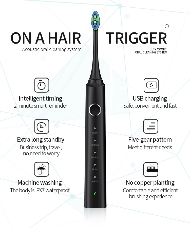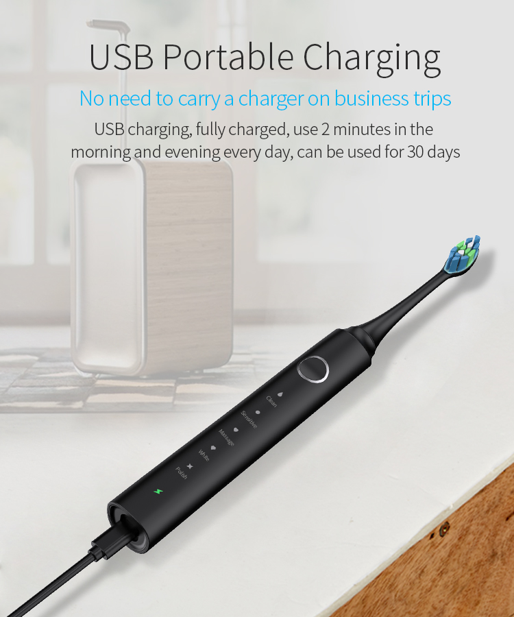 - 5 MODALITÀ DI SPAZZOLATURA AD ALTE PRESTAZIONI: Pulito (delicato), Bianco (forte), Lucidatura (frequenza invertita forte), Più delicato (frequenza invertita delicata) e Sensibile (morbido) per adattarsi alle diverse condizioni di denti e gengive, così puoi scegliere diverse modalità in base alle tue preferenze e alle raccomandazioni del dentista.