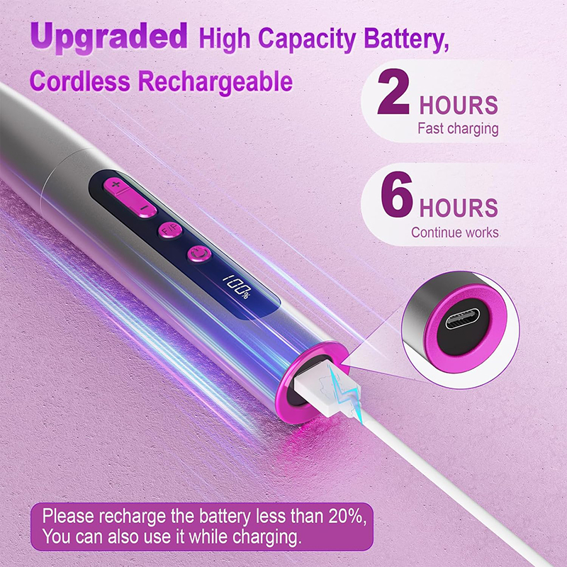 trapano elettrico per unghie Batteria ad alta capacità aggiornata, 2 ore di ricarica rapida e 6 ore di continuazione dei lavori. La lima per unghie elettrica è adatta per il tuo adattatore di alimentazione USB, laptop, alimentazione mobile, ecc. Se la potenza del trapano per unghie senza fili è inferiore al 20%, puoi usarla anche durante la ricarica.