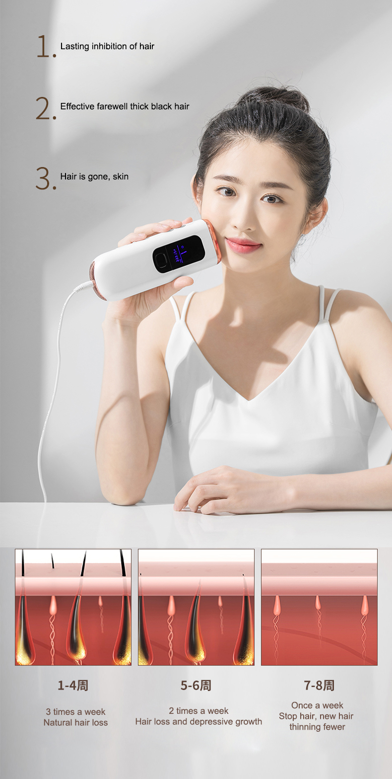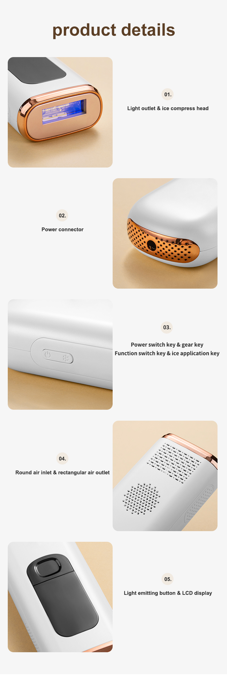 (Nota: 1, non adatto per pelle tatuata e troppo abbronzata, aree ferite e donne incinte. 2, è un dispositivo plug-in, si prega di tenere il dispositivo sempre collegato all'alimentazione durante il trattamento.)
