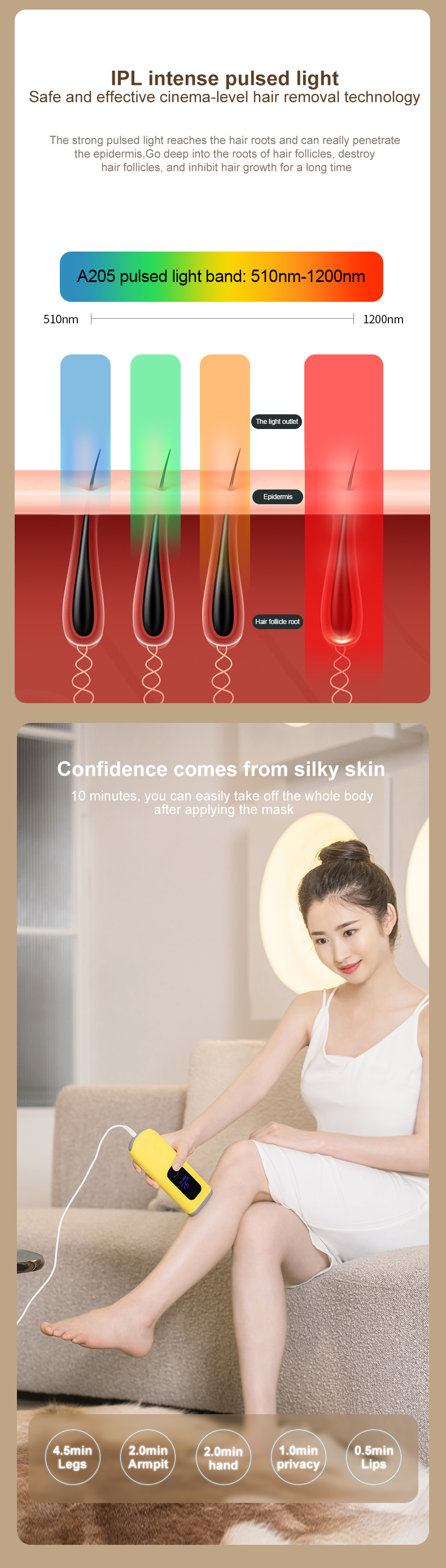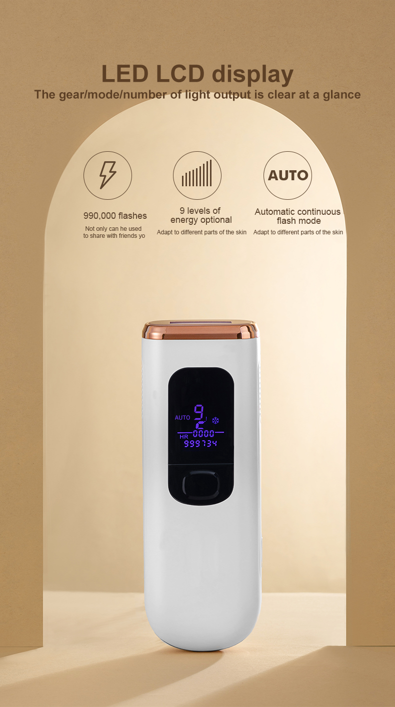 - Goditi una pelle liscia e ottieni una notevole riduzione dei peli. Dopo le prime quattro settimane di trattamento, continua con i ritocchi bisettimanali per apparire al meglio tutto l'anno. Il design della finestra a luce piatta a base di zaffiro mira ai peli alla radice garantendo al tempo stesso che ogni flash sia quasi indolore ed efficiente.