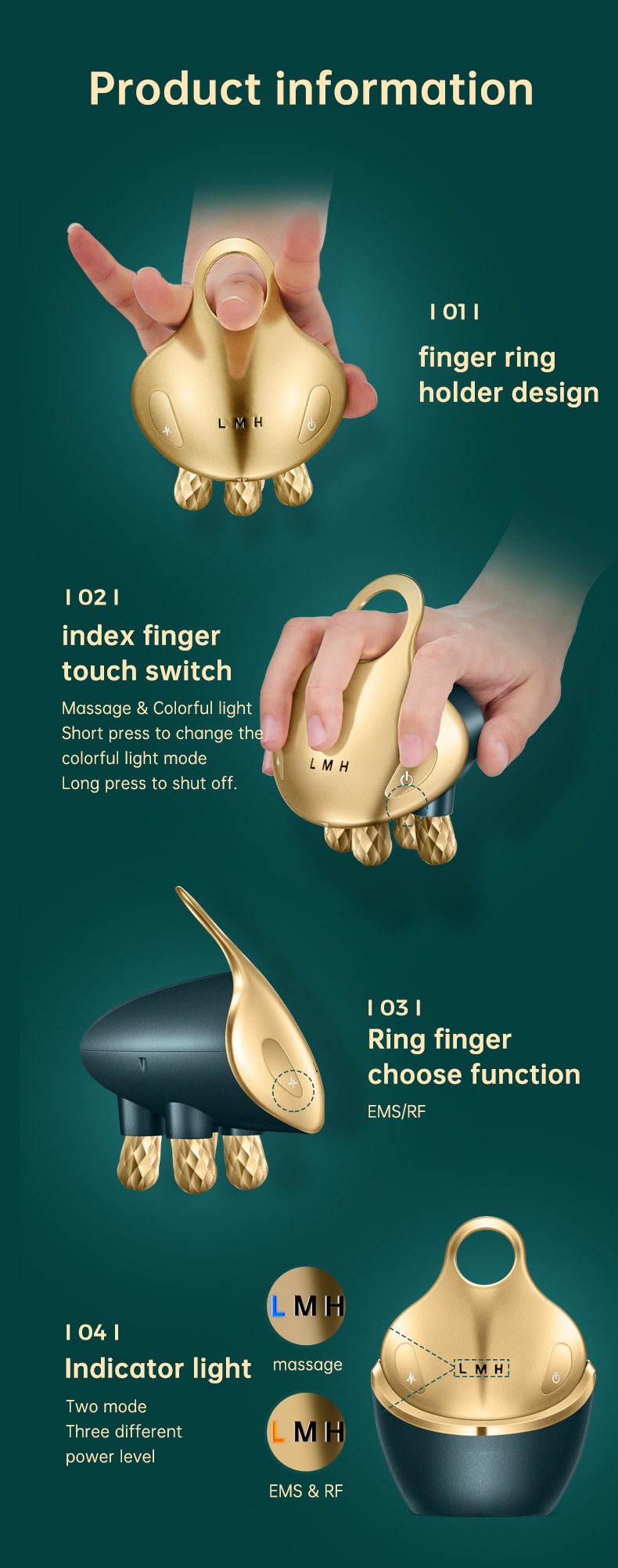 2. Massaggio+EMS+RF multifunzionale, 3 velocità e intensità regolabili
