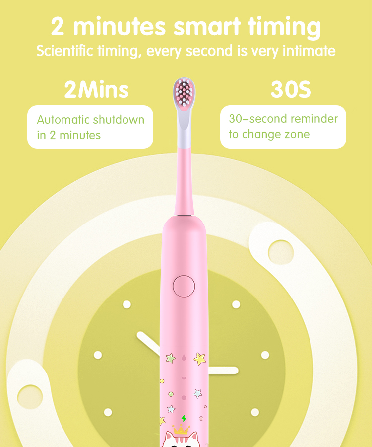 - TIMER AUTOMATICO: questo spazzolino elettronico è dotato di un timer intelligente integrato da 2 minuti che incoraggia il bambino a spazzolare i denti per periodi di tempo più lunghi, sviluppando buone abitudini di spazzolatura e riducendo la carie.